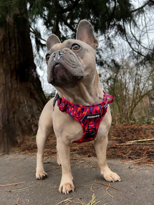 Fully adjustable with the ability for dogs to step in if they don't like harnesses going over their head.