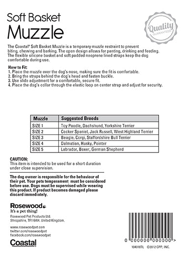 Temporarily restrains to prevent biting, chewing and barking. The muzzle features a flexible silicone basket and soft padded neoprene-lined straps for comfort during use. Easily adjusts for a perfect fit.